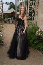 This black tulle corset gown by Gurbani London is like a fairy tale come to life, with a mix of gothic romance and ethereal elegance.