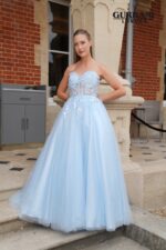 The bodice has 3D floral appliqués and a light dusting of sequins on it, which gives it just the right amount of shine. The flowing A-line shape falls gracefully to the floor, giving it a dreamy, romantic look that is perfect for proms, weddings, or any other magical evening event.
