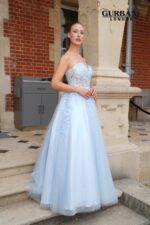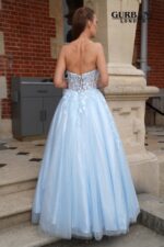 The bodice has 3D floral appliqués and a light dusting of sequins on it, which gives it just the right amount of shine. The flowing A-line shape falls gracefully to the floor, giving it a dreamy, romantic look that is perfect for proms, weddings, or any other magical evening event.