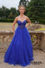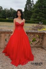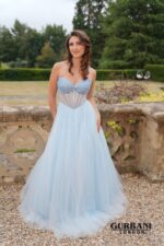 The full-length skirt cascades into voluminous layers of tulle, flowing gracefully with every step and creating a dreamy, ethereal presence. Perfect for red carpet moments, prom nights, or grand galas, this gown ensures all eyes are on you.