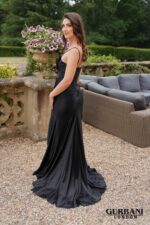 This stunning crimson satin gown by Gurbani London will get everyone’s attention. It has a bold, sculpted shape that will turn heads in the room.