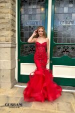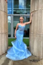 This beautiful champagne evening gown by Gurbani London is the perfect mix of sophistication and subtle glamour. It will make you look elegant.