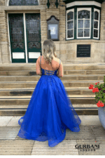 This beautiful champagne evening gown by Gurbani London is the perfect mix of sophistication and subtle glamour. It will make you look elegant.