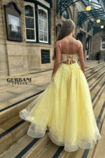 This beautiful champagne evening gown by Gurbani London is the perfect mix of sophistication and subtle glamour. It will make you look elegant.